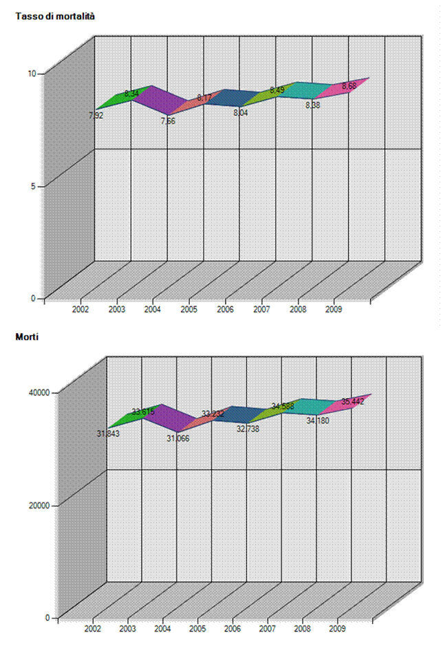 Popolazione media annua (N°), Morti, Tasso di mortalità (%) per Periodo (Anno)