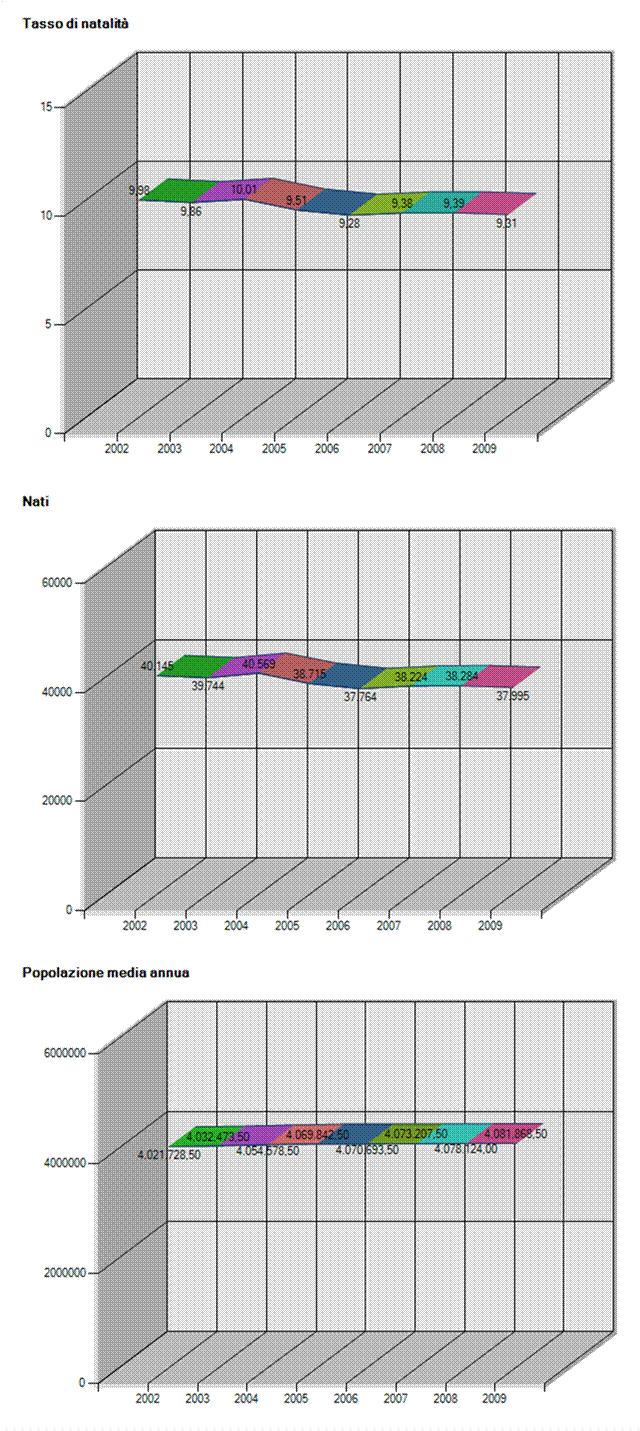 Nati, Popolazione media annua (N°), Tasso di natalità (%) per Periodo (Anno)