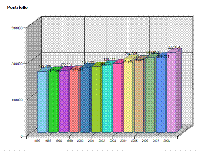 Numero di esercizi (N°), Posti letto (N°) per Periodo (Anno)